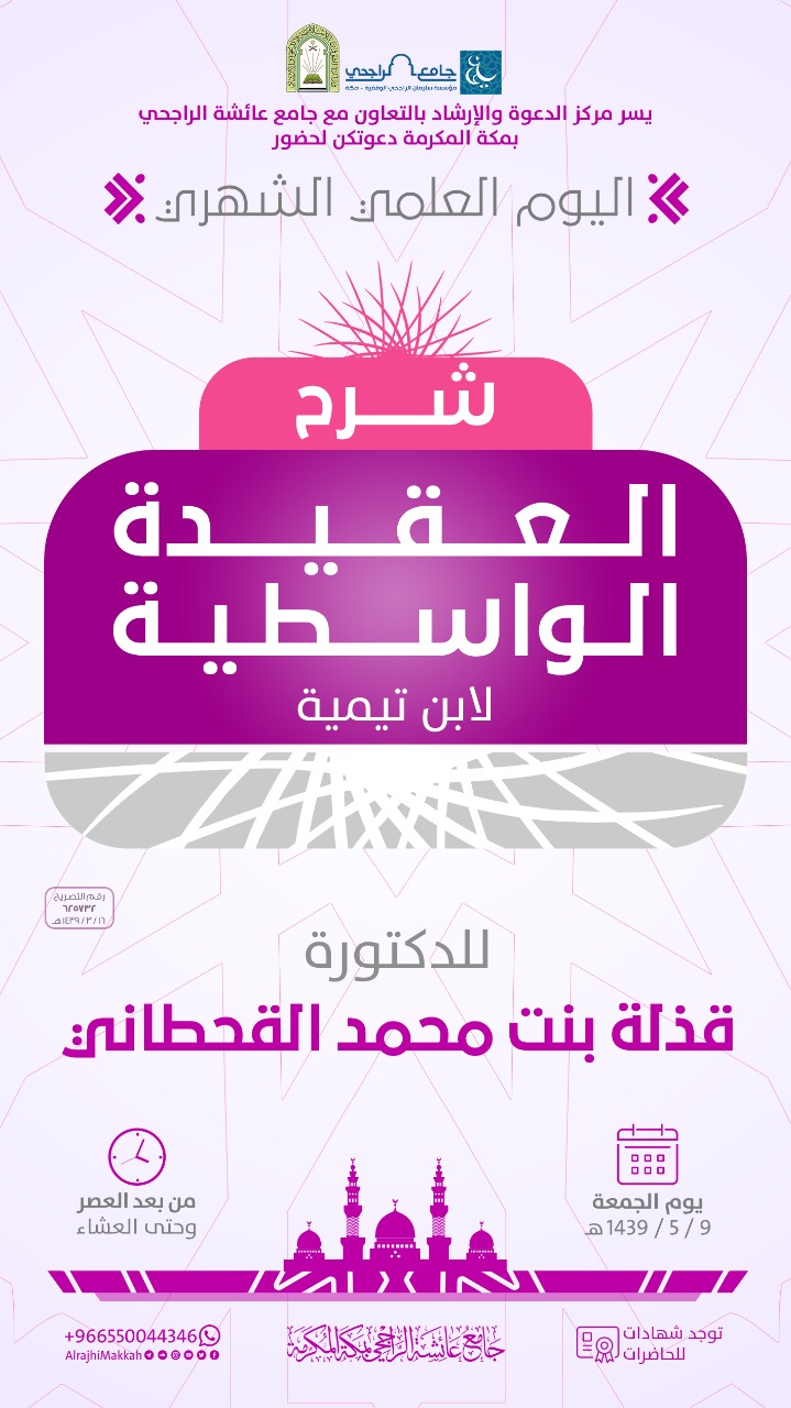 شرح مسائل العقيدة الواسطية بجامع عائشه الراجحي بمكة المكرمة شرح مسائل العقيدة الواسطية بجامع عائشه الراجحي بمكة المكرمة د . قذلة القحطاني