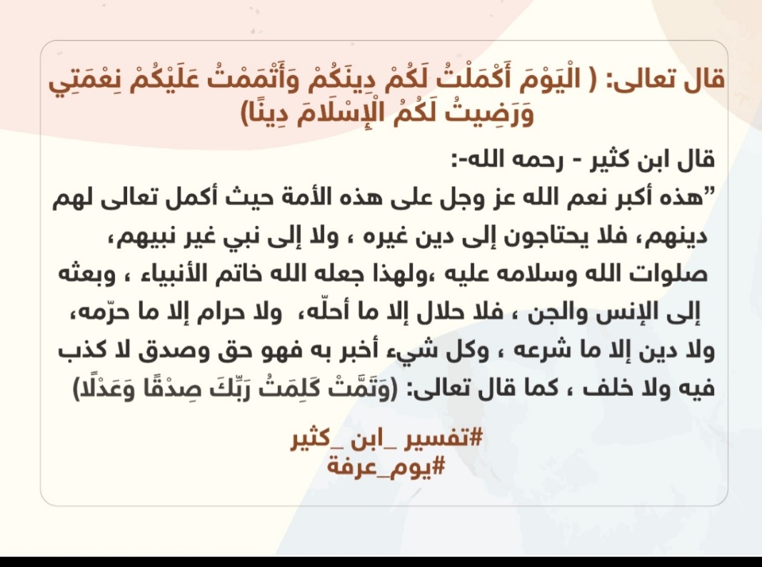 آية إكمال الدين ،نزلت يوم عرفة في يوم الجمعة #يوم_عرفة #الحج #التوحيد